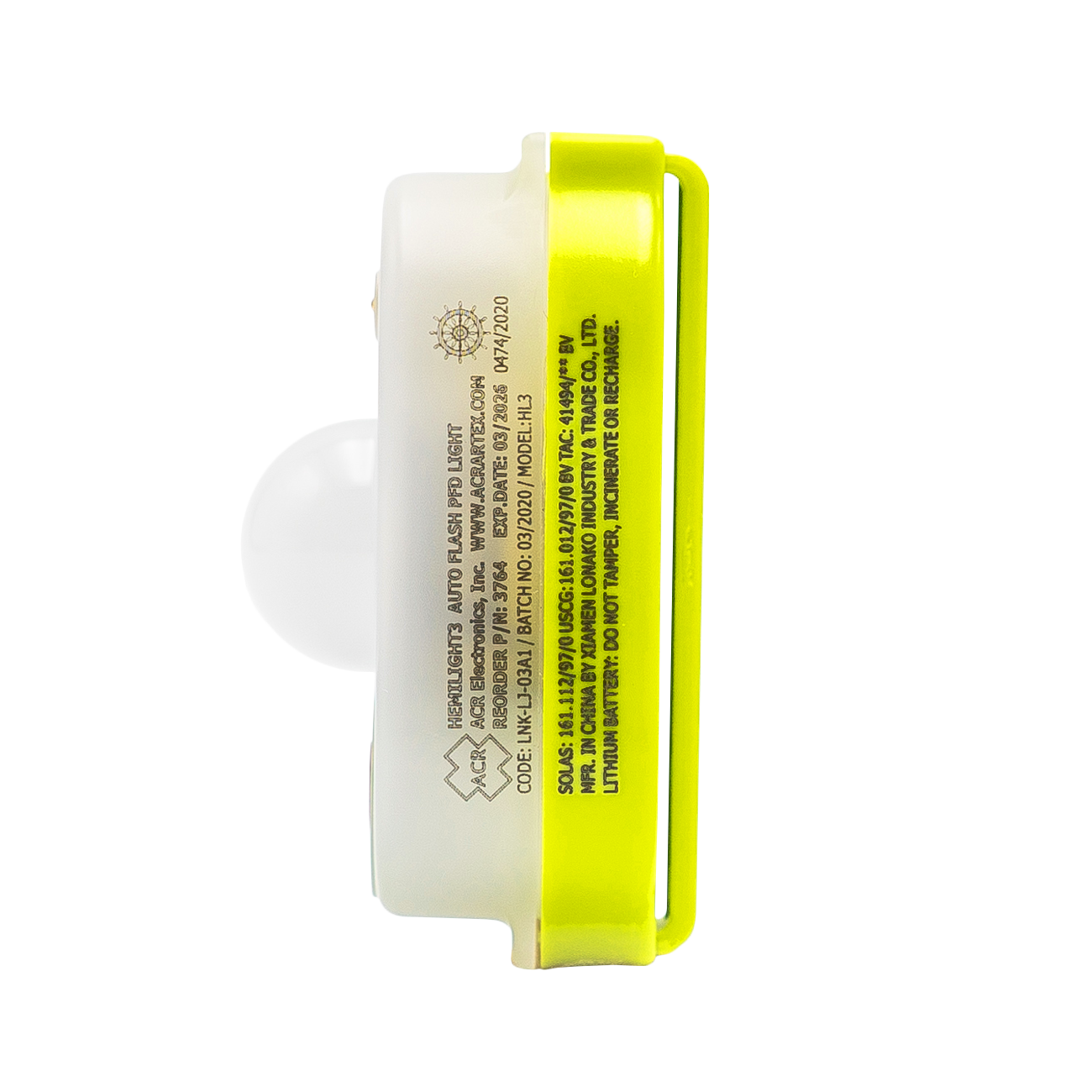 HemiLight ™ɜ er mindre end andre godkendte lygter og har afrundede kanter for at bevare integriteten af oppustelige redningsveste. Fastgørelsesløkker kan rumme op til 5 cm (2 tommer) brede bånd, og det robuste marinedesign sikrer mange års brugbar service.