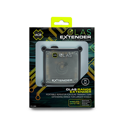 The ACR OLAS EXTENDER is a small, portable, wireless range extender that provides the flexibility of scaling your OLAS GUARDIAN Engine Kill Switch and OLAS CORE MOB Alarm Systems for use on larger vessels. While the OLAS Tag and OLAS Float-On transmitters and the OLAS CORE, OLAS GUARDIAN, and OLAS Mobile App receivers allow for coverage on vessels between 40 ft. and 50 ft., the OLAS EXTENDER allows for coverage on vessels up to 80 ft when used with the OLAS GUARDIAN or OLAS CORE.