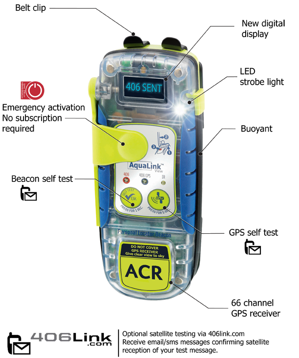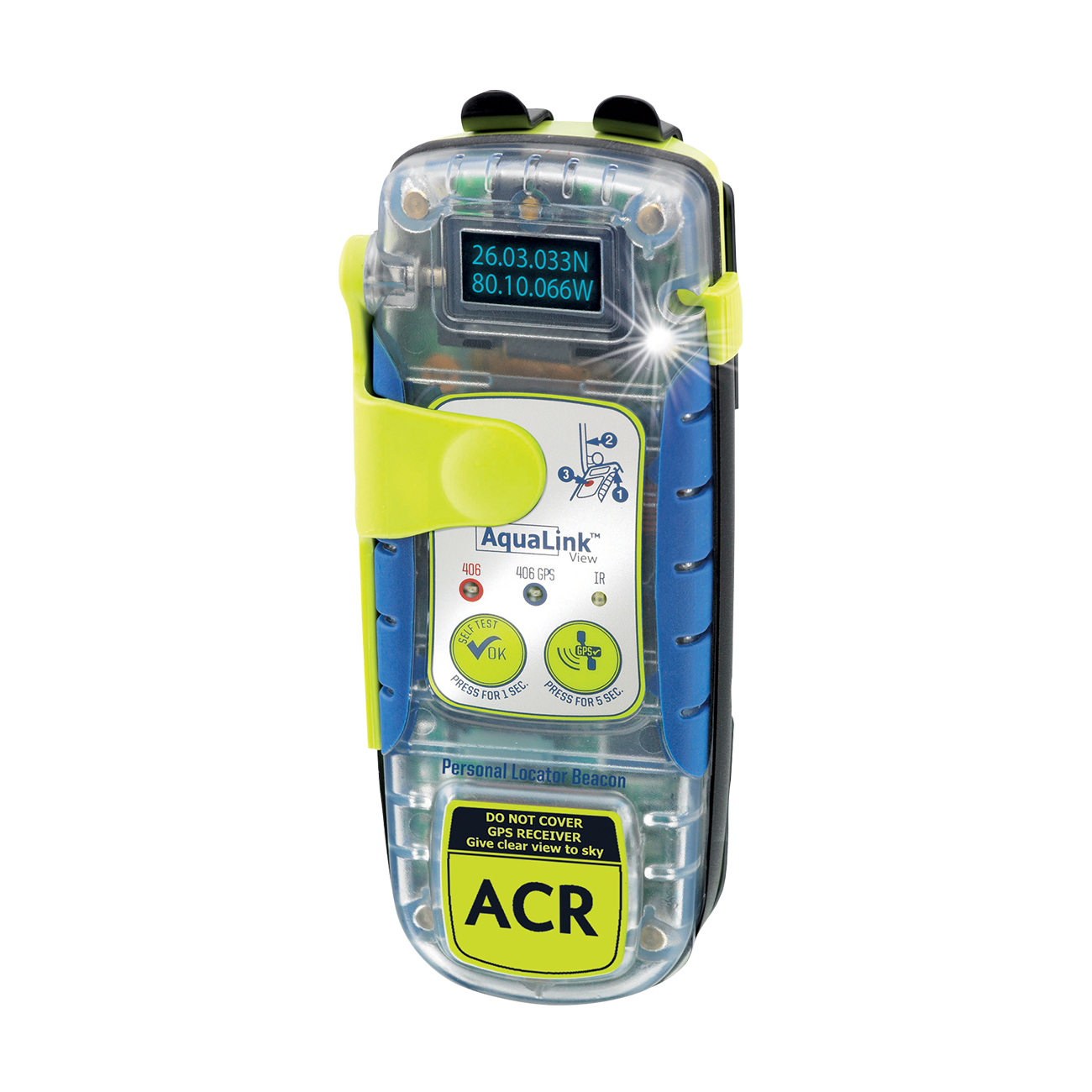 The AquaLink™ View broadcasts a unique registered distress signal that not only tells rescuers where you are, but who you are. The onboard GPS can fix your position to within 100 meters and then utilizes a powerful 406 MHz signal to relay your distress call to orbiting satellites. As local Search and Rescue is deployed, a separate homing signal and integrated LED strobe light guide rescuers to your exact location. The AquaLink™ View sports a digital display that allows you to see all of the beacon’s operational activities. The screen displays GPS LAT/LON, operating instructions, usage tips, transmission bursts as well as battery power. The digital display also makes self-testing your beacon simple and easy to understand by visually walking you through the self-test step-by-step. No more relying on listening to beeps and looking for LEDs. The AquaLink™ View is small enough to be easily carried in a pack or pocket or can be worn on deck, at the helm, in quarters, or on a life vest and will float if accidentally dropped overboard. ACR Exclusive: Built-in GPS acquisition test mode allows you to test GPS functionality up to 60 times over the life of the battery. Tap into the same field-tested rescue technology used by the U.S. Military, U.S. Coast Guard, NATO Special Forces, and Arctic explorers.