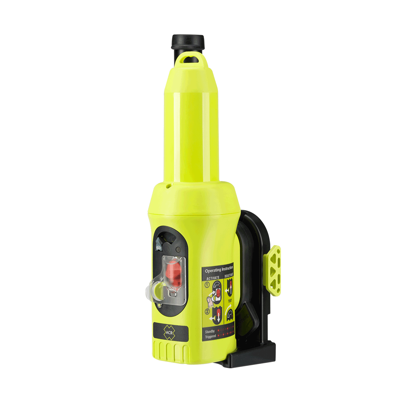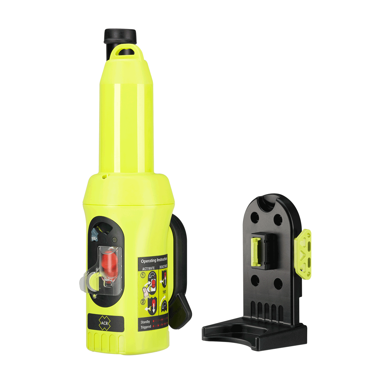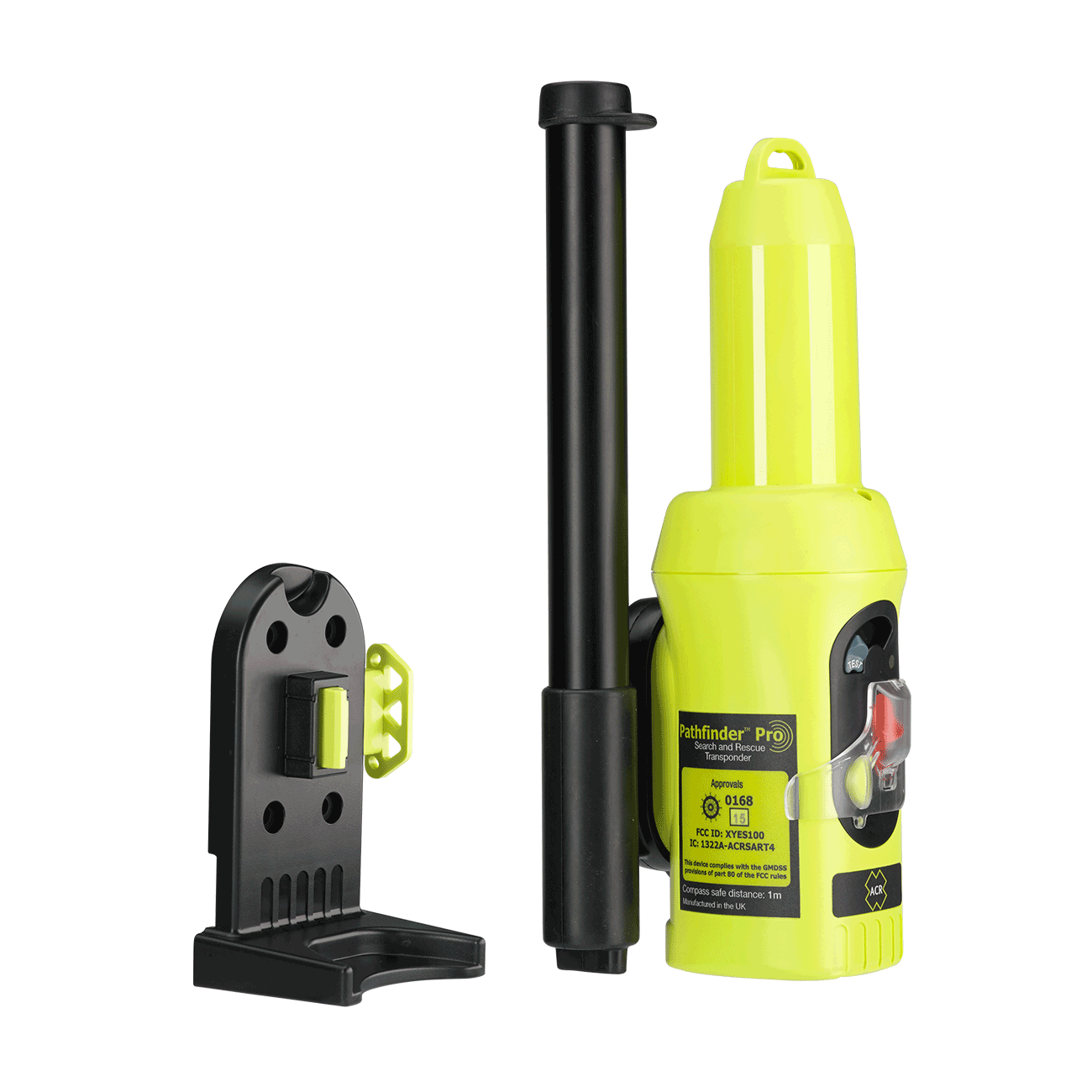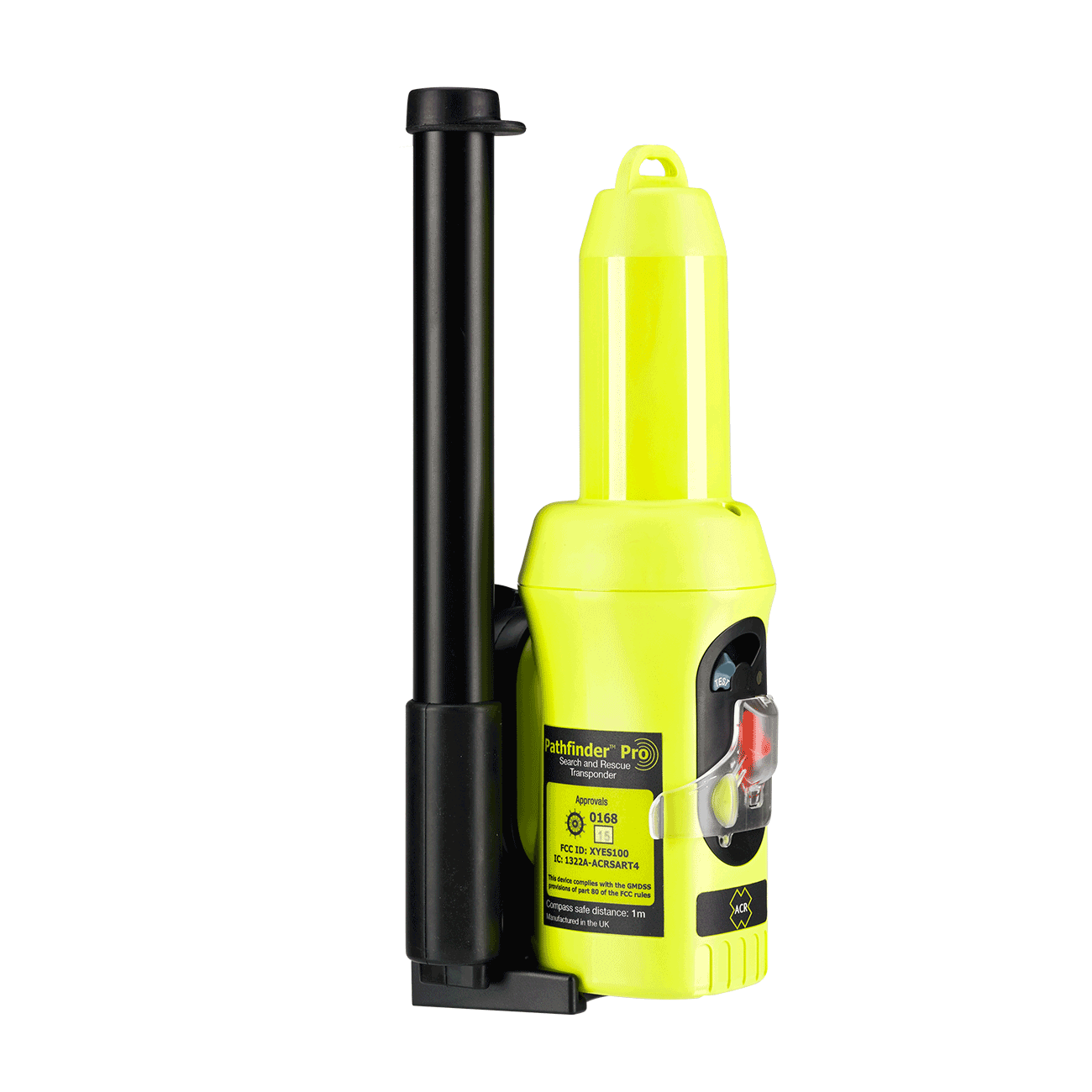 The Pathfinder Pro comes with a sleek wall mount to keep this compact SART out of the way, yet readily accessible in an emergency. The attached telescopic pole conveniently connects to the bottom of the SART and provides for maximum height and visibility out of a life craft. The SART can also be suspended inside the craft for hands free usage.